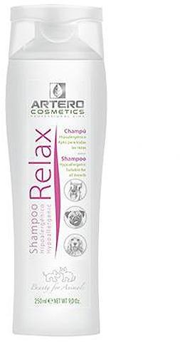 A RELAX - hipoallergén kutya sampon   a különösen érzékeny bőrű, allergiás tüneteket mutató kutyák fürdetéséhez fejlesztette ki az ARTERO . A benne lévő csipkebogyó, kamilla és Aloe Vera kivonat táplálja a bőrt, biztosítja annak rugalmasságát, csökkenti a vörösödést és nyugtatja az irritációt és a viszketést. Összetevői nyugtató hatással vannak az állat bőrére. A benne lévő dúsított fehérjék fenntartják a bőr természetes egyensúlyát. A benne lévő felületaktív anyagok tartalma több mint 90% -ban biológiailag lebomló.
