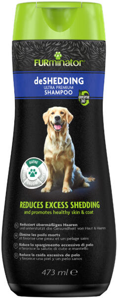 A zooplus. hu kínálatából: A FURminator deShedding Ultra Premium sampon különösen szőrváltás idején praktikus segítség négylábú barátja ápolásához. Segíti a meglazult szőrszálak, gubancok eltávolítását a mosás során, és a samponban található omega-3 és omega-6 zsírsavak támogatják a bőrt és szőrzetet a megfelelő nedvességtárolásban. Kedvence bundája a fürdés után puha és fényes lesz – parabének, szulfátok és mesterséges színezékek nélkül. A FURminator deShedding Ultra Premium sampon speciális OdorCapture 360 ​​technológiája arról is gondoskodik, hogy megfékezze és semlegesítse a nedves kutyaszagot . A FURminator deShedding Ultra Premium sampon jellemzői:Ápoló sampon kutyáknakBármely szőrtzetípushoz alkalmasdeShedding-hatás: rendszeres használatával csökkenthető a túlzott szőrhullás, hatékonyan eltávolíthatók a kilazult szőrszálak és gubancokOmega-3 és omega-6 zsírsavakkal: segíti a bőrt és szőrzetet a nedvességtárolásbanÁpoló tisztítás: a puha, fényes szőrzetértOdorCapture 360 ​​technológia: segít a szagok semlegesítésében és a nedves kutyaszag eliminálásábanHozzájárul a bőr egészségének és a szőrzet ápoltságának megőrzéséhezNem tartalmaz parabéneket, kémiai színezékeket vagy szulfátokatŰrtartalom: 473 mlMegjegyzés: Nedvesítse meg a kutya bundáját, majd vigye fel a sampont az állat egész testére, és jól habosítsa fel! Végezetül alaposan öblítse le! Szükség esetén ismételje meg a folyamatot!Gyermekektől távol tartandó!