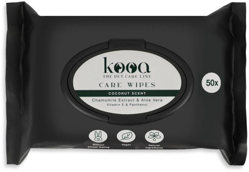 A zooplus. hu kínálatából: A kooa termékeivel ugyanolyan színvonalú testápolást nyújthat háziállatának, mint saját magának:Szenvedélyünk bundás négylábú családtagjaink kellemes közérzetének és kényelmének biztosítása, hogy minden új napot a lehető legjobban élvezhessenek velünk. Növelje háziállata életminőségét - termékeinkkel biztos lehet abban, hogy egy innovatív prémium ápolómárkát választott kedvence számárakooa. Redefining Pet Care. (kooa. A kisállat-ápolás újra-definiálása)A kooa nedves törlőkendő tökéletes választás kutyája kíméletes tisztításához és ápolásához. A kamillakivonattal és aloe verával gazdagított vegán ápolókendők nyugtató és hidratáló hatást biztosítanak. Ideálisak négylábú barátja bundájának és mancsainak mindennapi ápolásához és tisztításához. A vegán kooa törlőkendők különösen praktikusak kellemes kókuszillatuknak köszönhetően, amely friss illatot kölcsönöz kutyájának. Emellett értékes E-vitamint és panthenolt tartalmaznak, amelyek hozzájárulnak a bőr egészségéhez. Felelősségteljes és állatkísérlet-mentes gyártási eljárással készülnek, így biztos lehet benne, hogy csakis a legjobbat használja kedvence számára. A kooa Care Wipes nedves törlőkendő jellemzői:Kíméletes ápoló törlőkendők kutyáknakÁpoló: kamillakivonattal és aloe verával, nyugtató és hidratáló hatásúE-vitaminnal és pantenollal: támogatja a bőr egészségétFelelősségteljes gyártás: vegán, állatkísérlet-mentes és fenntartható előállításKellemes illat: kókuszillattalTartalom: 50 darab Megjegyzés: Kezdje a tisztítást a fejnél, kerülje az olyan érzékeny területeket, mint a nemi szervek vagy a szemek. A mancsokhoz mindig használjon friss kendőt. Használat után szorosan zárja le a csomagot, hogy megakadályozza a kiszáradást. Napi használatra alkalmas. Megjegyzés: Gyermekektől elzárva tartandó! Ne húzza le a WC-n!