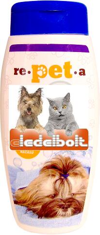 . A Repeta kutyasampon egy optimalizált összetételű általános és erősen tisztító hatású sampon. A Repeta normál kutyasampon az optimalizált összetételű általános sampon erősen tisztító hatású, ugyanakkor a benne található bőr és szőrtápláló anyagok pótolják a kioldott zsírt, ápolják, megnyugtatják a bőrt, a szőrt jól kifésűlhetővé és selymessé teszik. Rendszeres használata a fokozott szennyeződéseknek kitett kutyáknak ajánlott. Adagolás és az alkalmazás módja:A sampon testhőmérsékletű csapvízzel higítandó. Kutyáknak10 testömeg kilogrammonként 15 ml sampont kell felhígítani úgy, hogy a fürdéshez szükséges sampon mennyiségét 0,5 liter vízben kell elkeverni. Nagyobb testű kutyák részére a számított mennyiséget 1,5 liter vízben ajánlott elkeverni. Ezt követően a kutya benedvesített bundáját a felhígított samponnal át kell dörzsölni, majd langyos vízzel alaposan ki kell öblíteni. Ellenjavallatok:Nem alkalmazható a termék összetevőivel szembeni ismert túlérzékenység esetén. Mellékhatások:Nem ismertek. Figyelmeztetések:Fürdet s előtt az állatokat meg kell itatni, nehogy igyanak a samponos vízből. Ügyelni kell rá, hogy a fürdővíz ne kerüljön az állat szemébe, fülébe vagy szájába.  Lejárati idő: Felhasználható az eredeti csomgaláosan tárolva a gyártástól számított 2 évig. Tárolási előírások: +15 °C és + 25°C közötti szobahőmérsékleten, az eredeti csomagolásban, száraz helyen tárolandó. Összetétel: Aqua, Sodium laureth sulfate. Cocamidopropyl betaine, Sodium chlodie, Cocamide DEA, Glycol stearate, Propylene glycol, Benzyl alcohol, Methylchloroisothiazolinone, Methylisothiazolinone, Citric acid, Fragrance